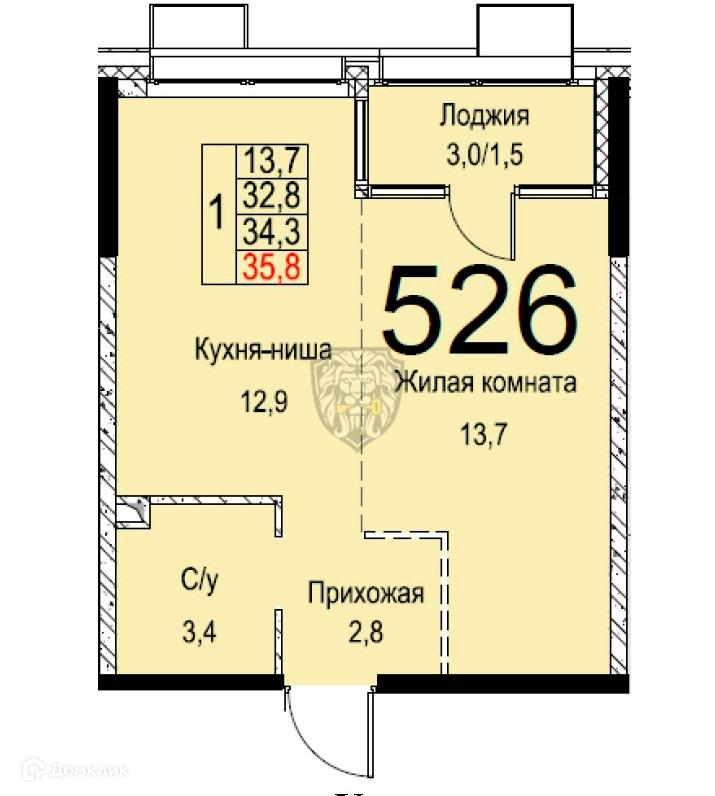 Общая площадь 35.8 м2