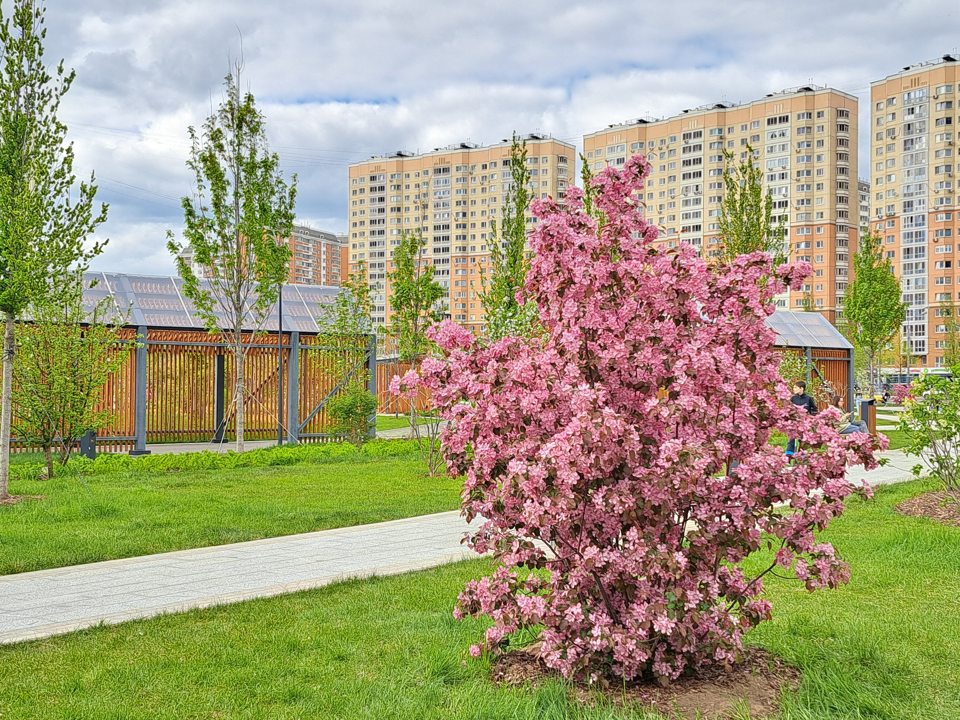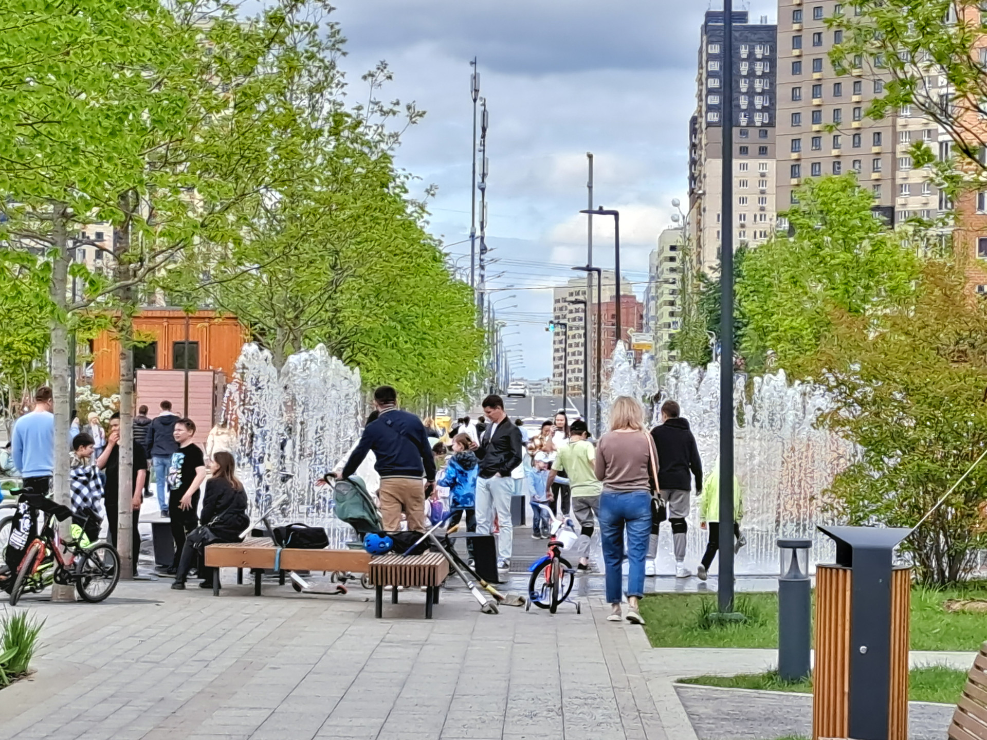 Прекрасный район с массой насаждений деревьев и кустарников.