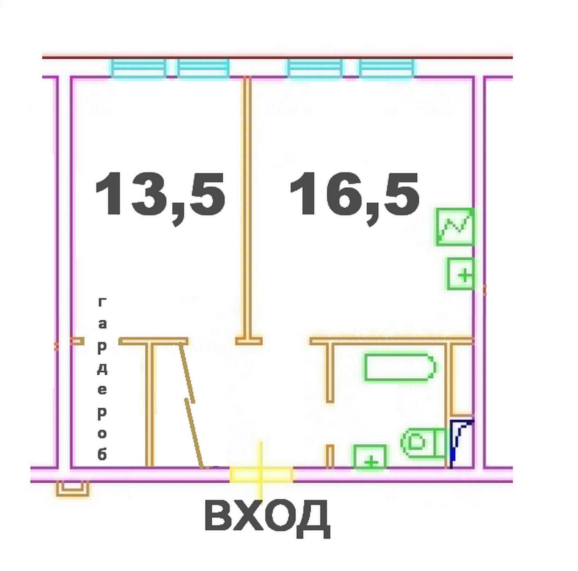 Общая площадь 41.6 м2