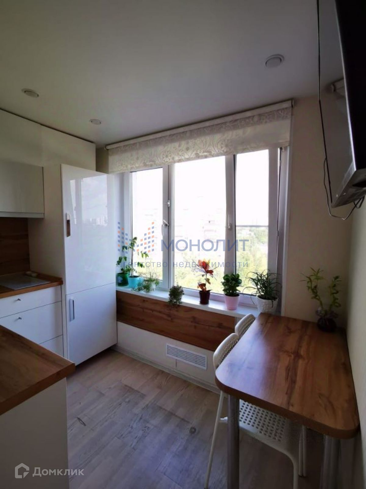 Комнаты изолированы, на полу паркетная доска и плитка, балкон застеклен и отделан, санузел раздельный. Встроенная мебель и техника остаются будущим владельцам. Дом расположен в тихом и зелёном районе, во дворе детские и спортивные площадки.