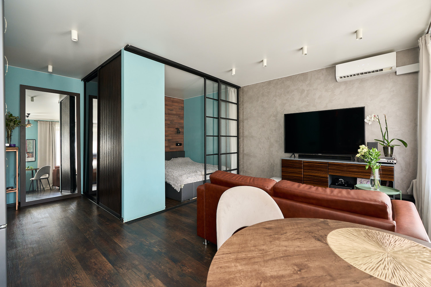 Теперь, когда вы настроились на нужную волну, приготовьтесь к шоу планирования! Да, это студия, но здесь вас ждет отдельная уютная спальня. А в зоне гостиной - просторное место, чтобы вы могли пригласить всех своих друзей на вечеринки. Кстати, из гостиной имеется выход на утеплённый балкон, где разместился кабинетный уголок! А еще кухонная зона — где можно раскрепоститься по полной программе! Но и это еще не все! В ванной комнате в современном стиле – имеется полноценная ванная для приятного расслабления! Очень важно отметить, что в квартире сделана полная шумоизоляция. Да, и в доме прекрасные соседи.