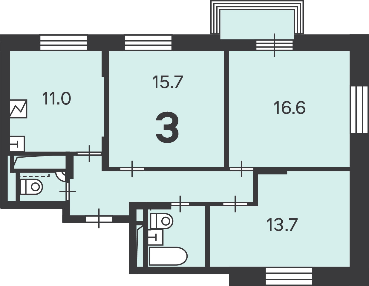 Количество комнат 3