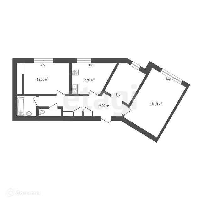 Общая площадь 59.4 м2