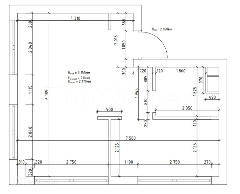 Высота потолков 3.1 м