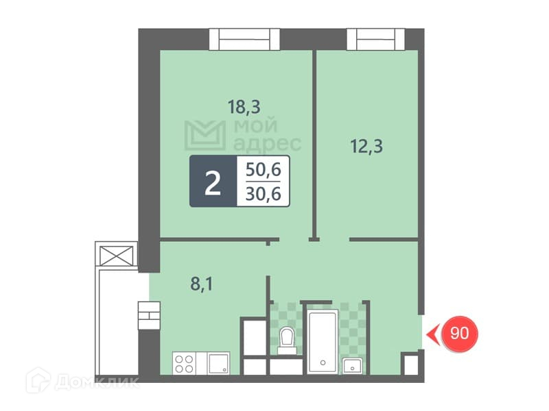 Общая площадь 50.6 м2
