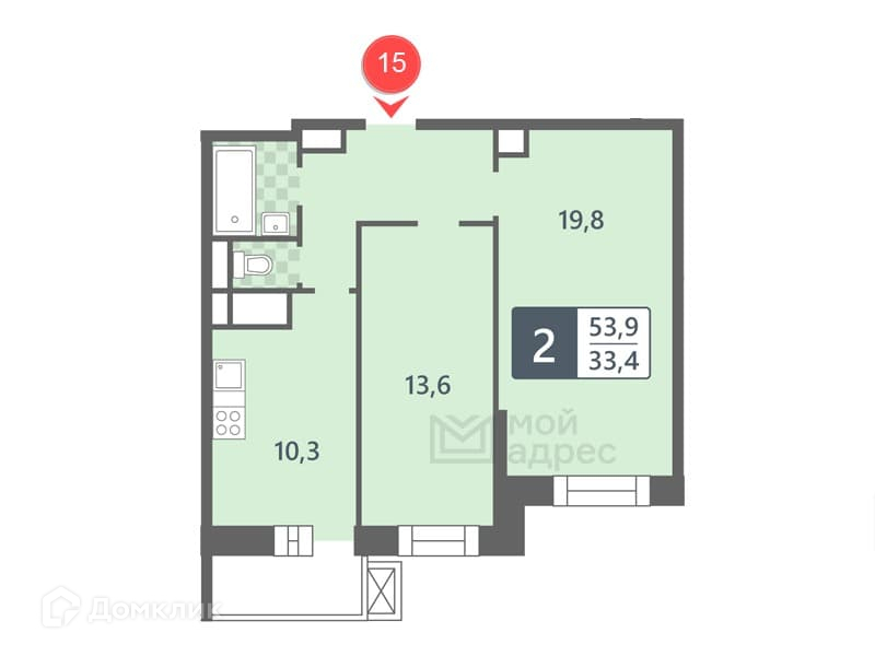 Общая площадь 53.9 м2