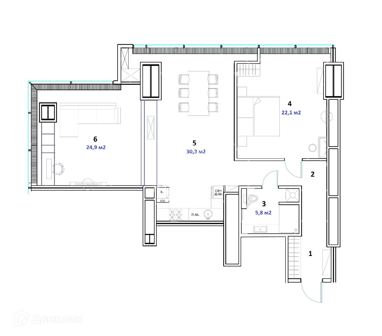Общая площадь 102.2 м2