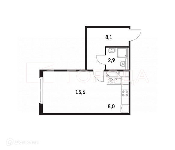 Общая площадь 34.3 м2