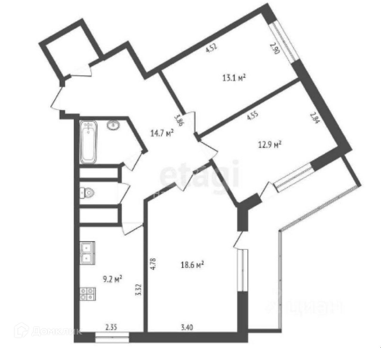 Общая площадь 78.1 м2
