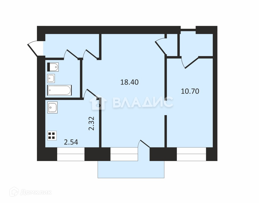 Общая площадь 43.3 м2