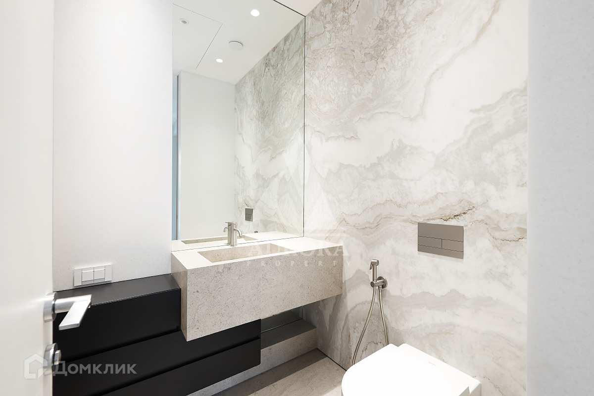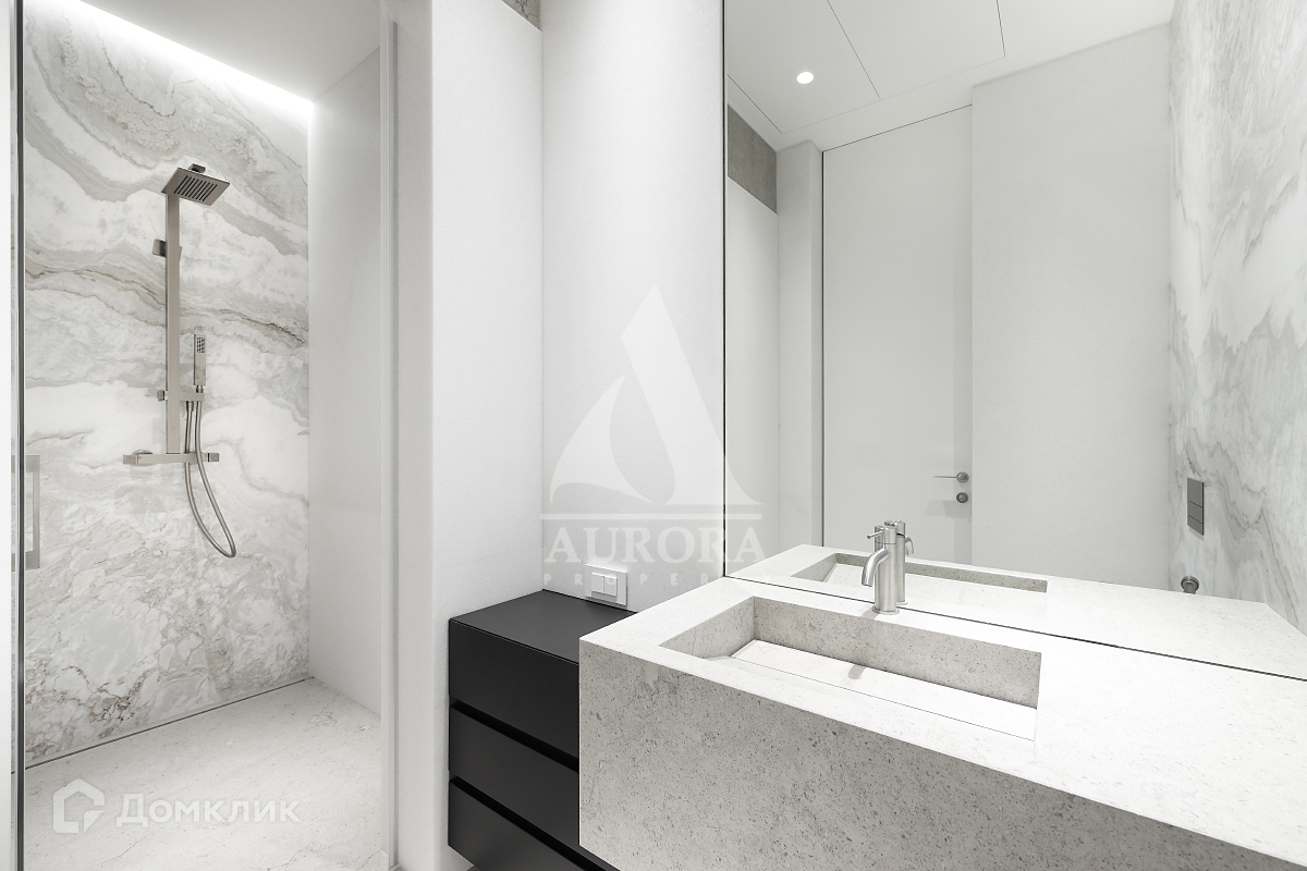 Выполнена качественная отделка в современном стиле. Большие панорамные окна наполняют пространство светом, а дубовый паркет сочетается с поверхностями из натурального мрамора в ванной комнате и кухне.