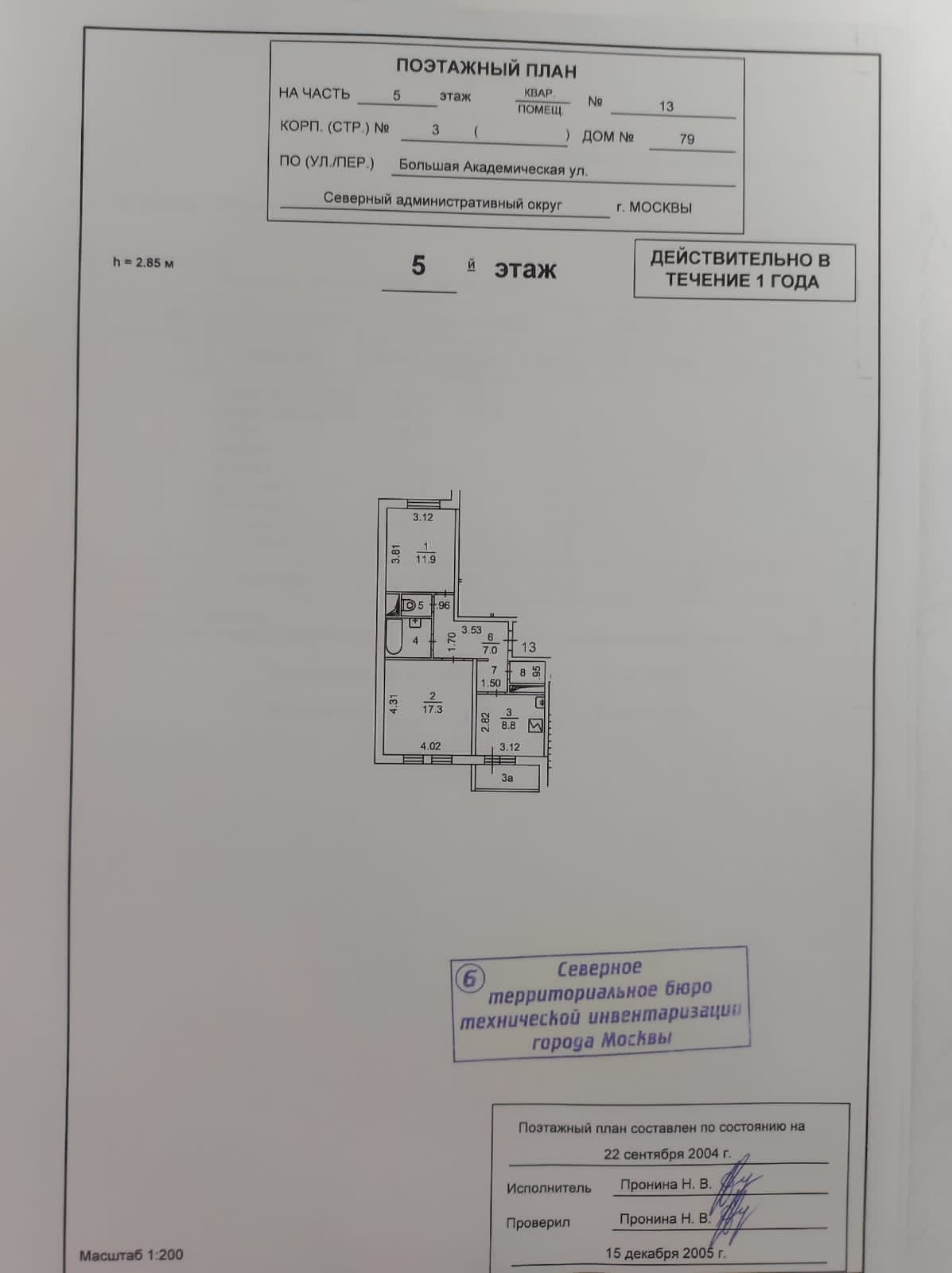 2-комнатная квартира, 54 м2, этаж 3 / 9, на продажу в Москве, Большая Академическая улица, 79к3