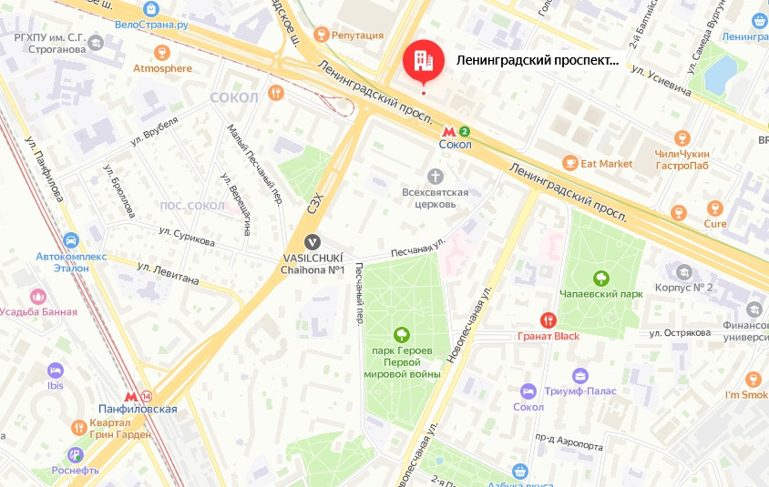 Две станции метро в пешей доступности: Сокол - 2 минуты, Панфиловская – 20 минут.