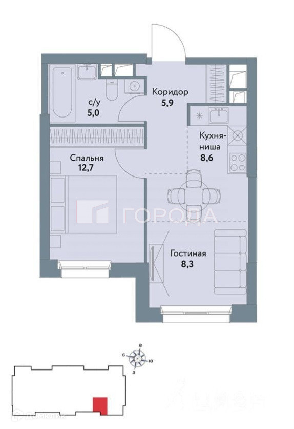 Жилая площадь 12.7 м2