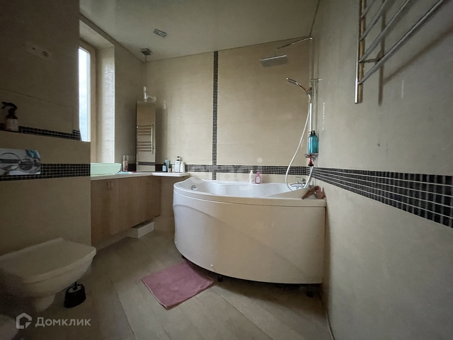 Функциональная планировка: кухня - гостиная, 2 изолированные комнаты, спальня и детская, 2 с/у один с джакузи один гостевой, хозяйственно-постирочная комната, встроенные шкафы. Кондиционер, теплые полы.