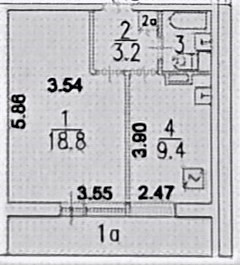 Общая площадь 34.4 м2