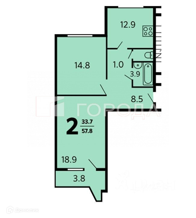 Жилая площадь 33.7 м2
