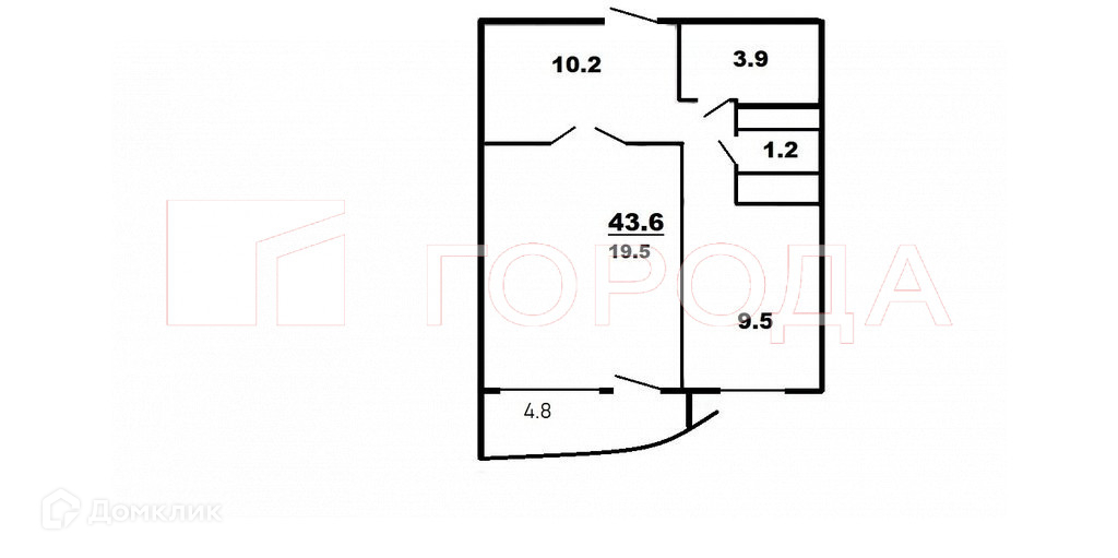 Общая площадь 43.6 м2