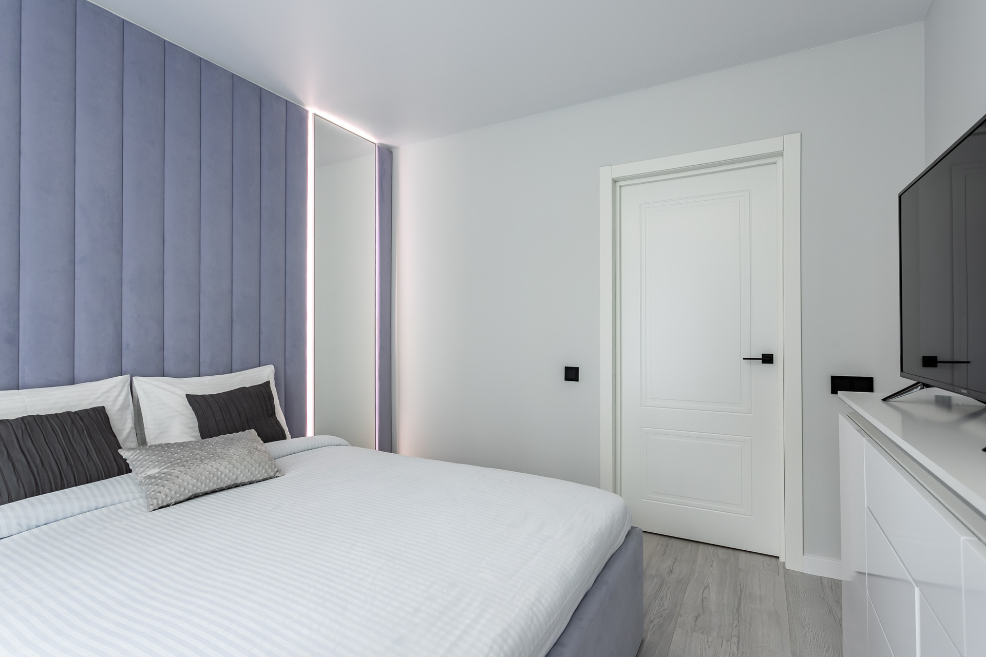 В квартире сделан новый дизайн-ремонт с продуманной меблировкой и сценариями освещения. Вся мебель сделана на заказ, по индивидуальному проекту, продумана система хранения. Есть отдельная гардеробная.