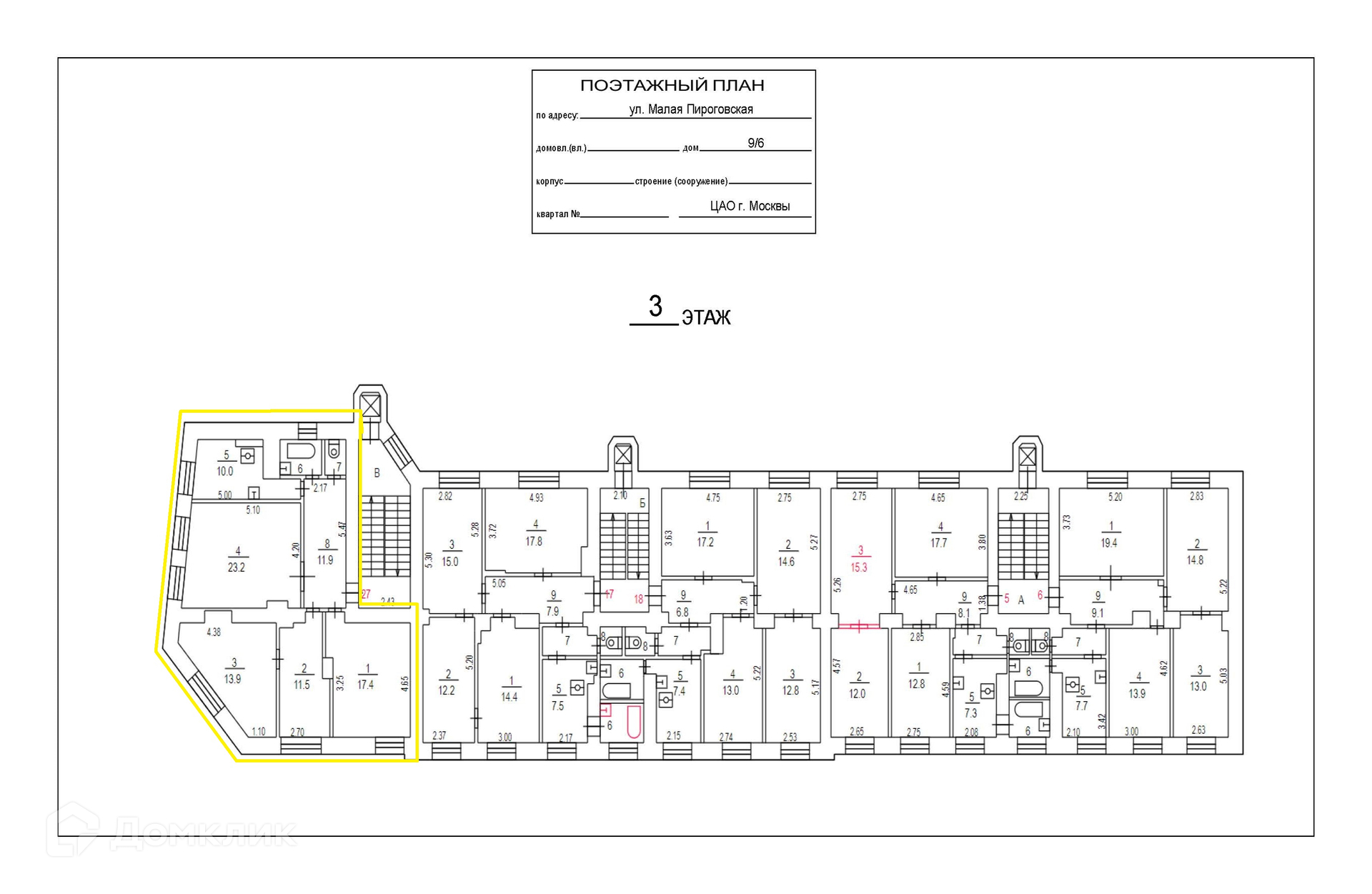 4-комнатная квартира, 92.3 м2, этаж 3 / 6, на продажу в Москве, Малая Пироговская улица, 9/6