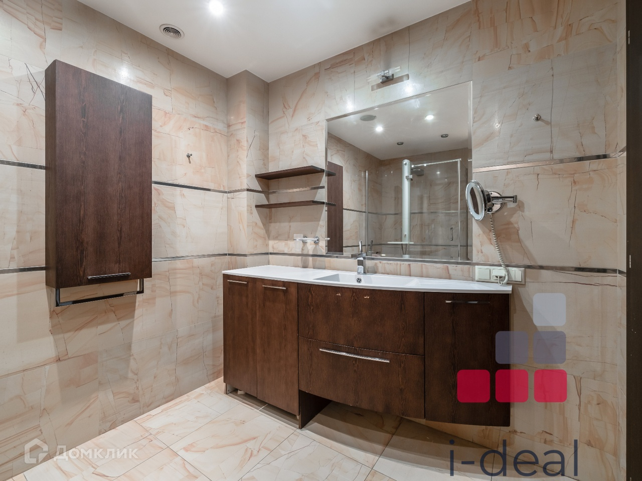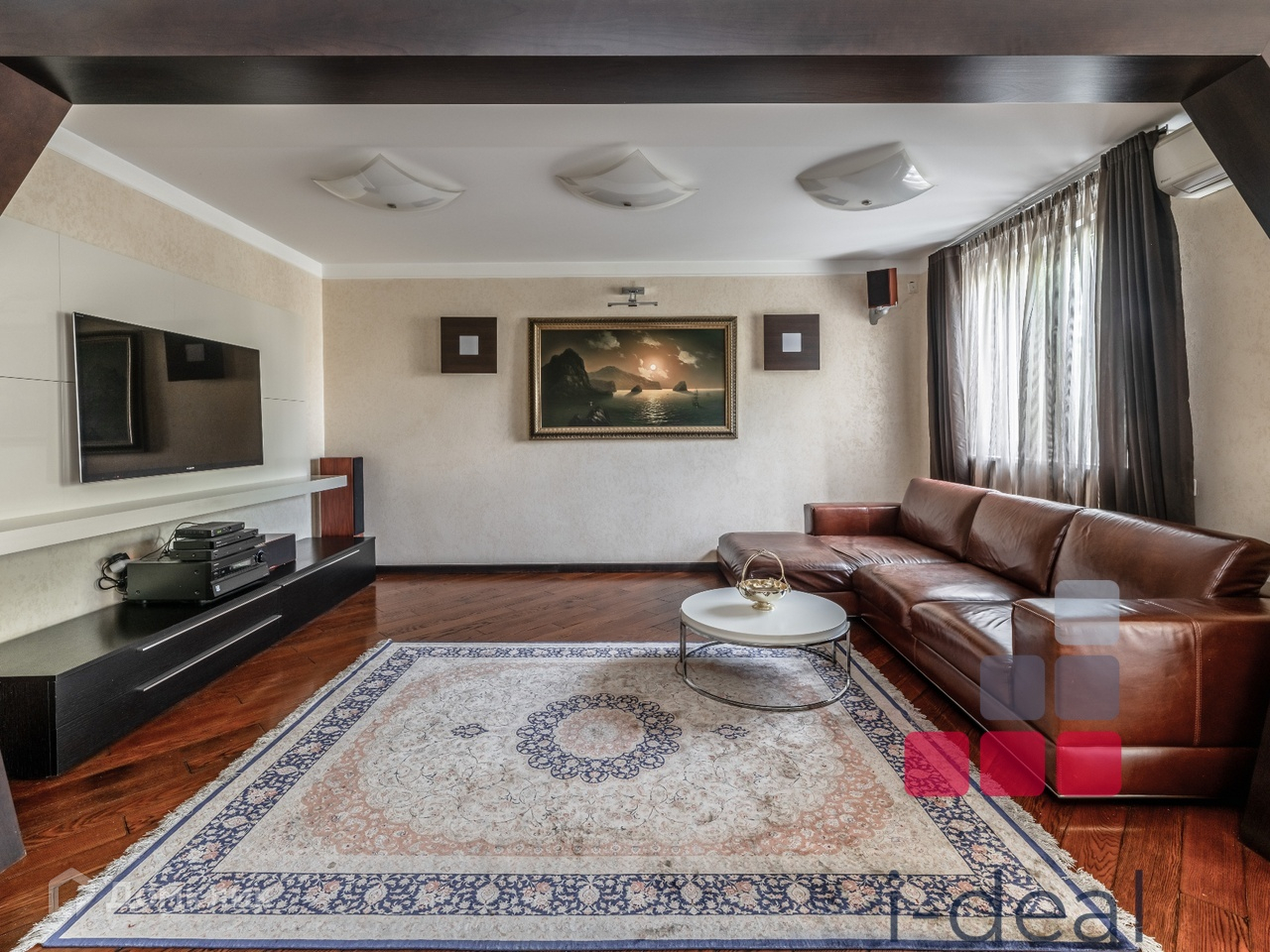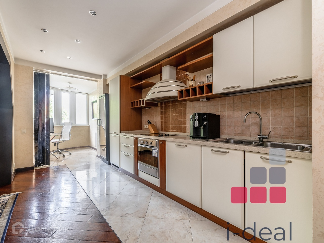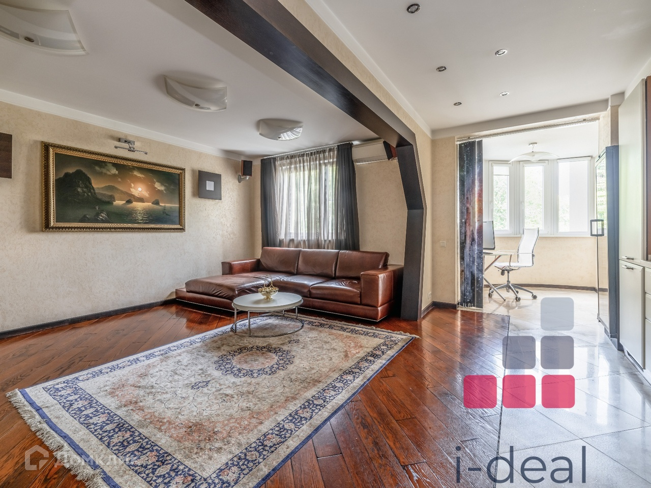 Дизайн квартиры выполнен по индивидуальному проекту с элементами венецианской штукатурки, паркетом из красной вишни и итальянским керамогранитом.