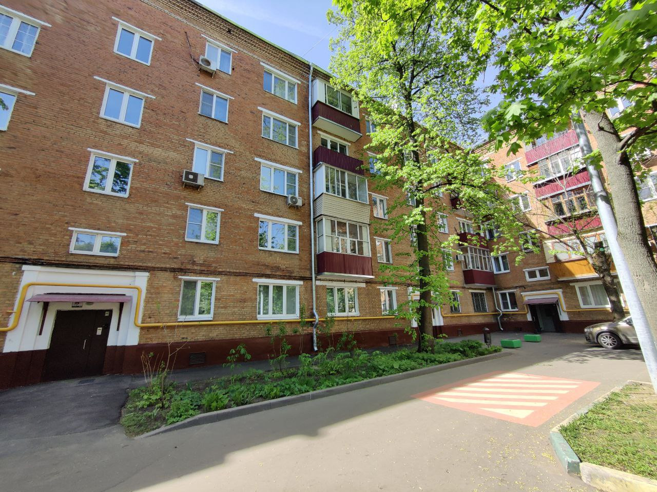транспорте или 25-30 пешком. Подъезд чистый. Есть детская и спортивная площадка во дворе, парковка открытая стихийная во дворе. В программу реновации не входит.