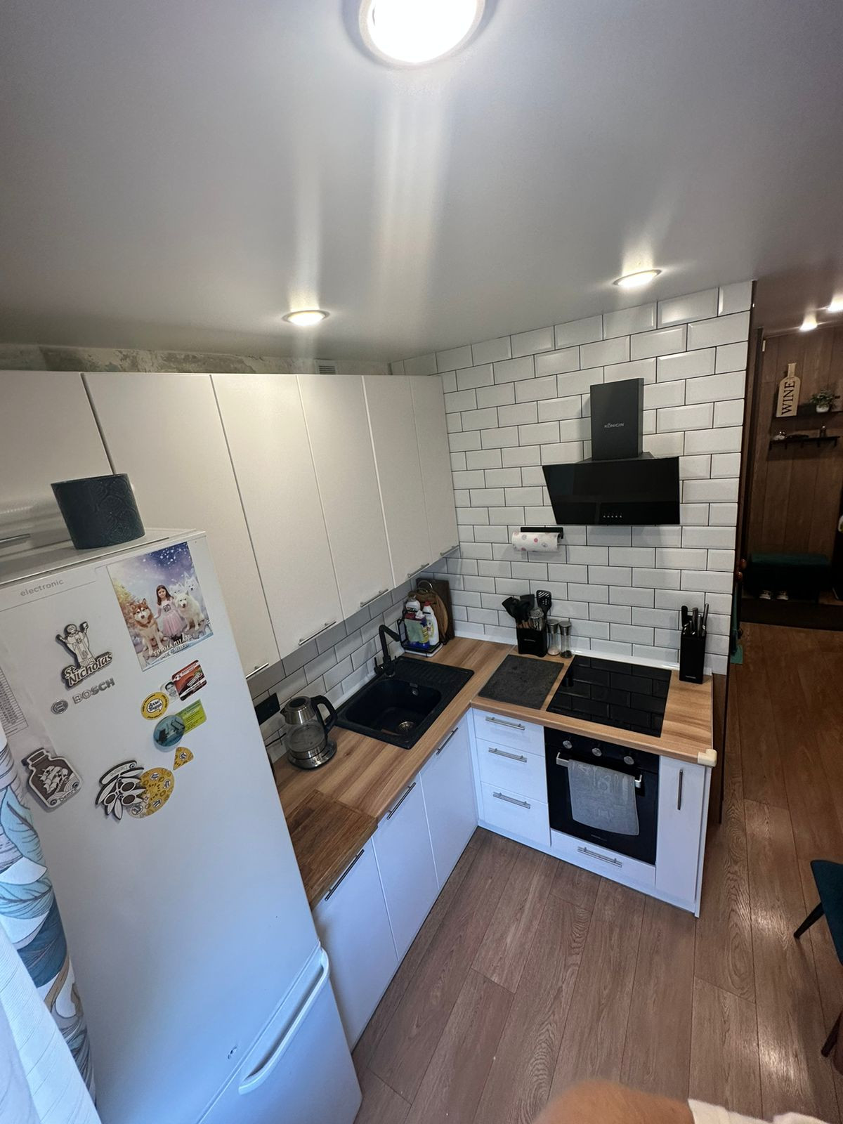 Современный кухонный гарнитур с необходимой техникой - кухню заменили буквально 2 месяца назад, ремонт кухни и коридора выполнен также 2 месяца назад. Застекленный балкон с отделкой, раздельный санузел