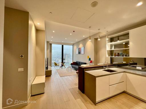 Апартамент с дизайнерским ремонтом, расположен на 17-ом этаже 78-этажного монолитного здания. Общая площадь 62,1 кв.м. При создании проекта использовались высококачественные материалы премиального уровня.