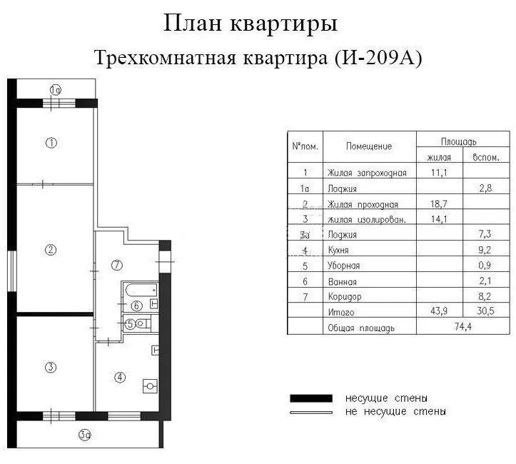 Площадь квартиры 65,2(с балконами 74,4)