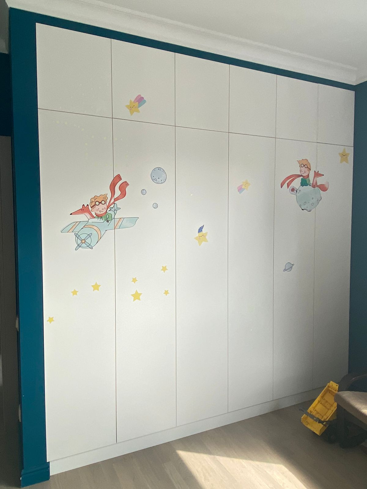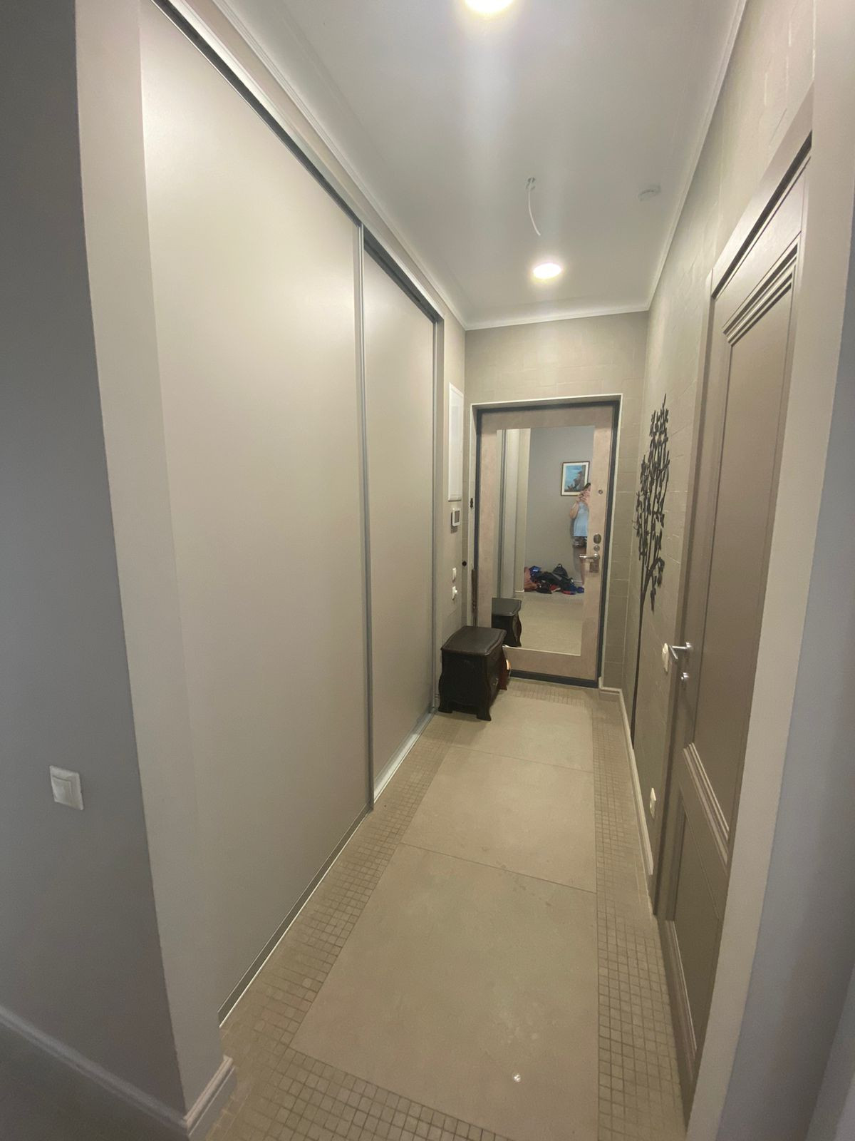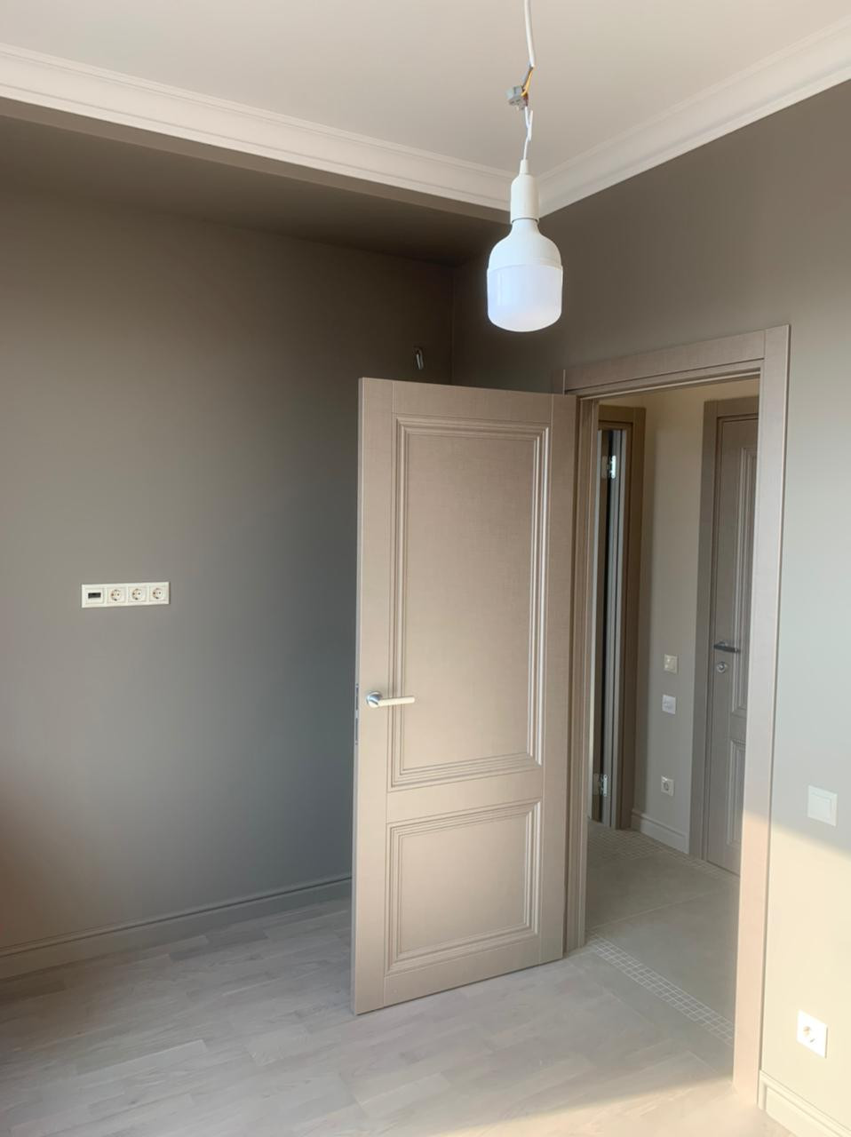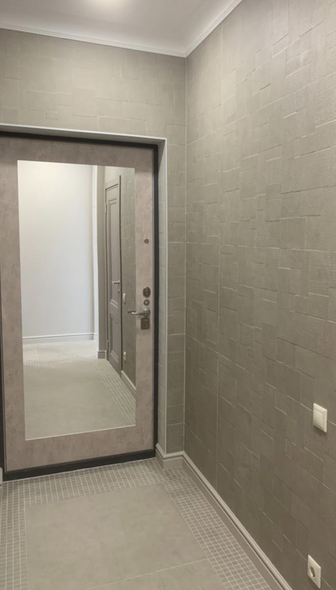 В квартире дизайнерский ремонт. На кухне имеется мебель, посудомоечная машина, плита, вытяжка. В коридоре, спальне и детской встроенные шкафы Mr. Doors.