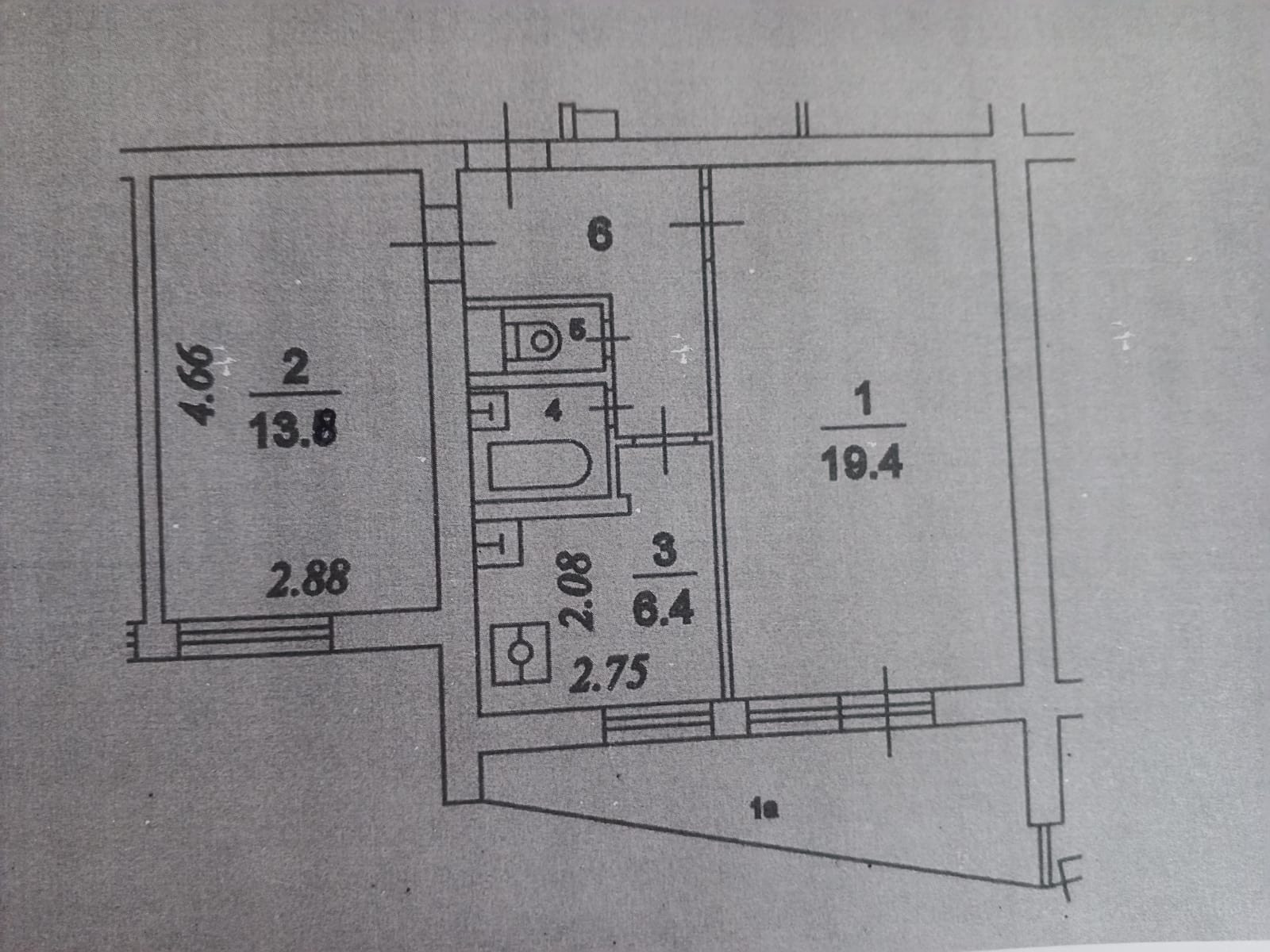 Жилая площадь 33.2 м2