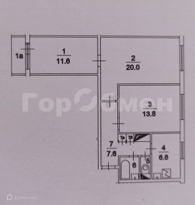 Жилая площадь 45.4 м2