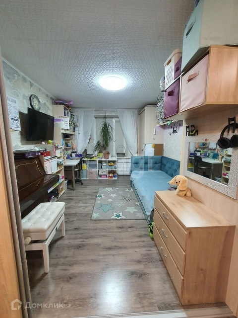 Ламинат, санузел плитка, балкон застеклен. Кондиционер в комнате и на кухне.