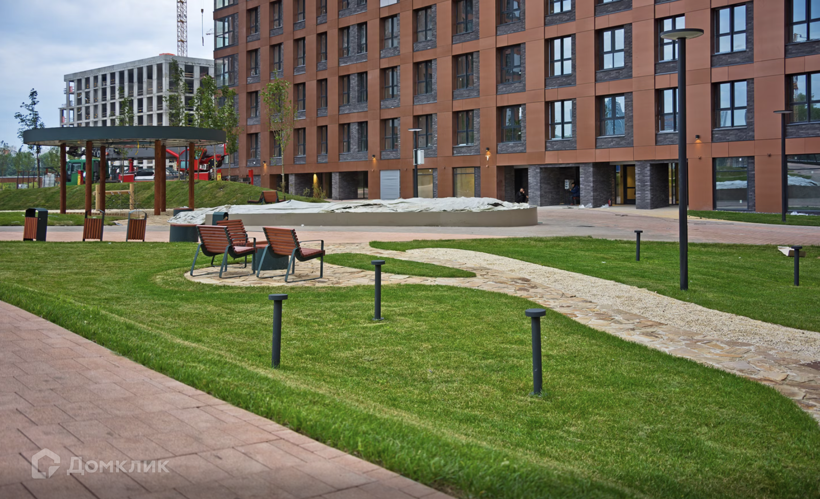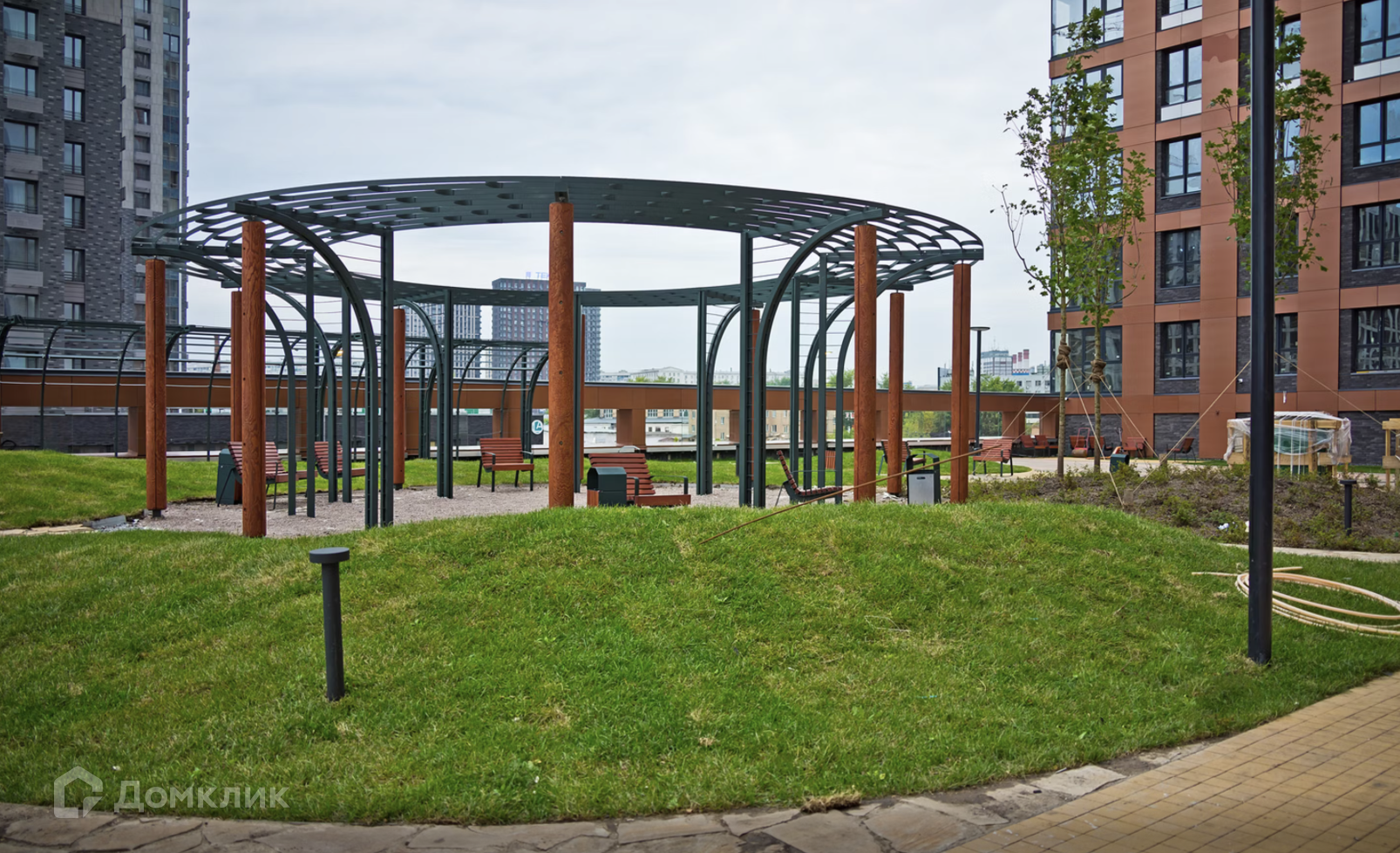 Концепция внутренних дворов разработана и построена на принципах многоуровневого зонирования и озеленения с учетом различных потребностей жителей. Высадка взрослых деревьев, необычных хвойников и редких растений преимущественно в светлой гамме создает привлекательную картину в  любое время года.