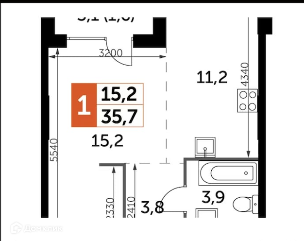 Общая площадь 35.7 м2