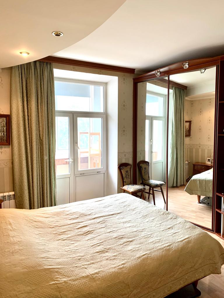 Большая квартира в сталинском доме в ЦАО, с высокими потолками и двумя балконами. Рядом 3 станции метро.