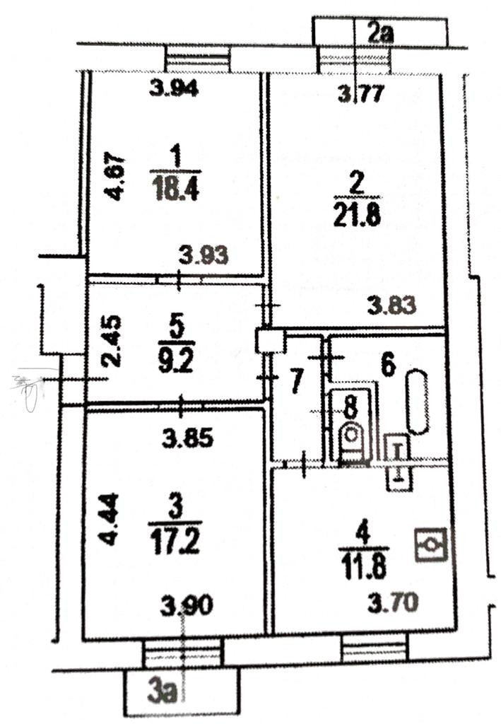 Удачная планировка квартиры - изолированные комнаты (18 кв.м., 21 кв.м. и 18,4 кв.м.) правильной формы, с большими окнами на две стороны.