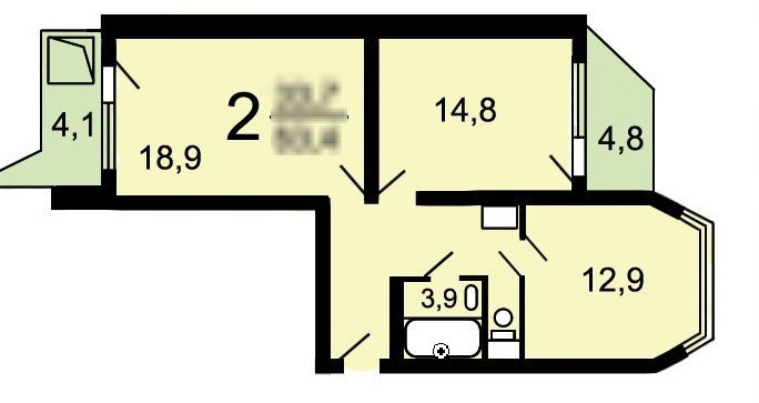 Общая площадь 58.5 м2