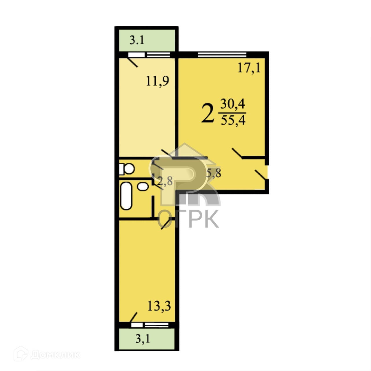 Общая площадь 55.9 м2