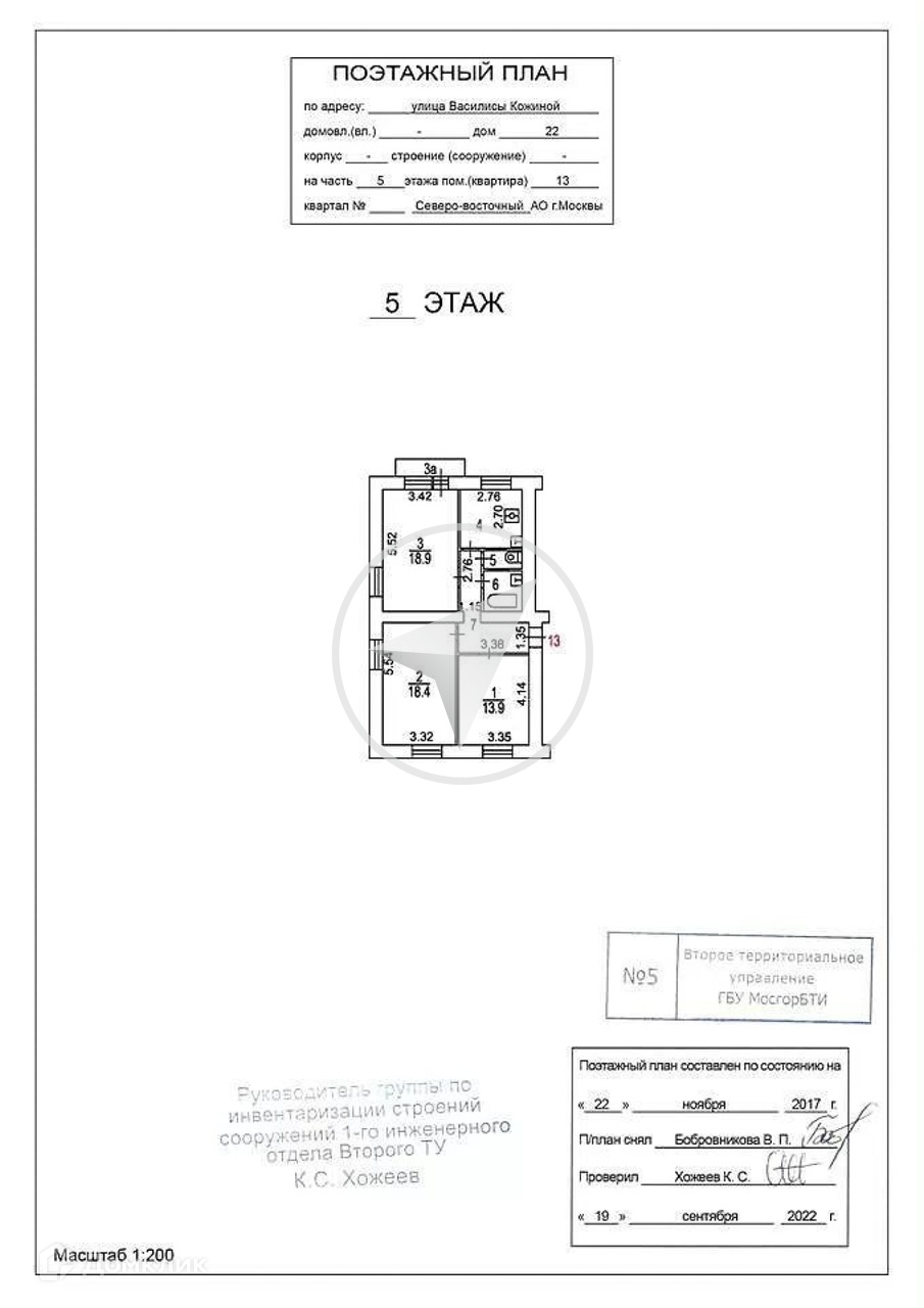 3-комнатная квартира, 72 м2, этаж 5 / 5, на продажу в Москве, улица Василисы Кожиной, 22
