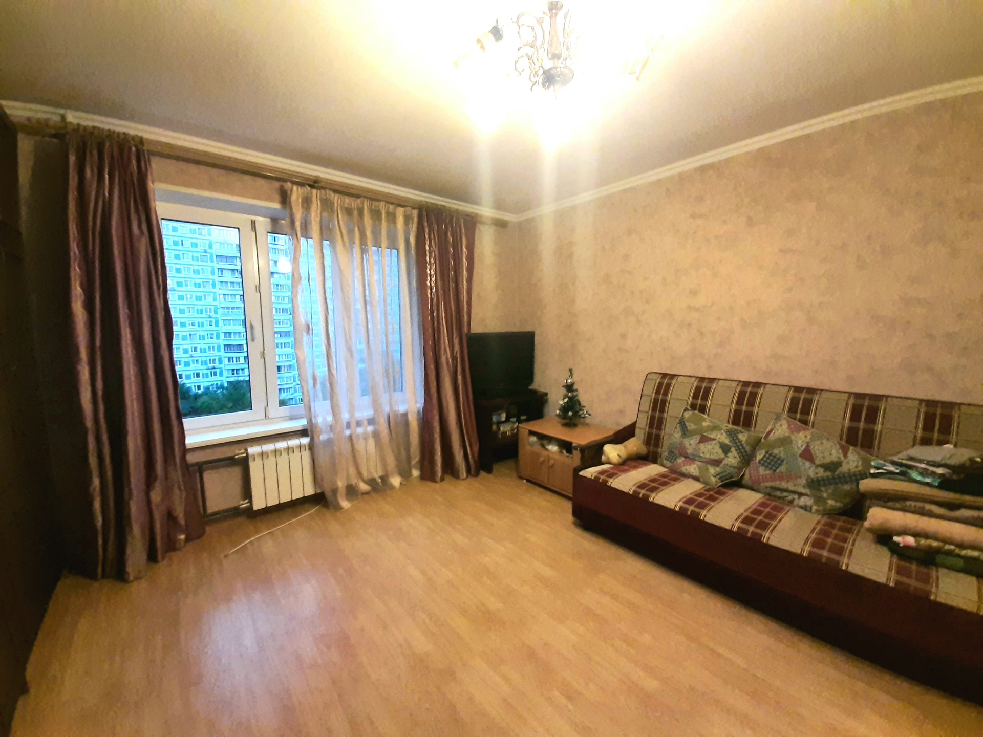 В 4-х минутах ходьбы от м. Свиблово продам светлую и просторную 3-комнатнаю квартиру в серии 515/9Ш, только в этом варианте серии трехкомнатные квартиры имеют вид распашонки с выходящими на разные стороны дома окнами. В комнате  имеется лоджия в форме трапеции. Есть кладовка.
