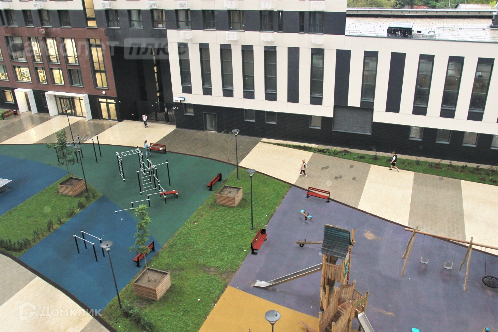 Двор свободный от машин, несколько детских площадок для деток разного возраста, work out площадка. Предусмотрен фитнес клуб с бассейном, свой детский сад. На первых этажах, коммерческие площади : магазины сферы обслуживания, салоны красоты, аптеки, кофейни...