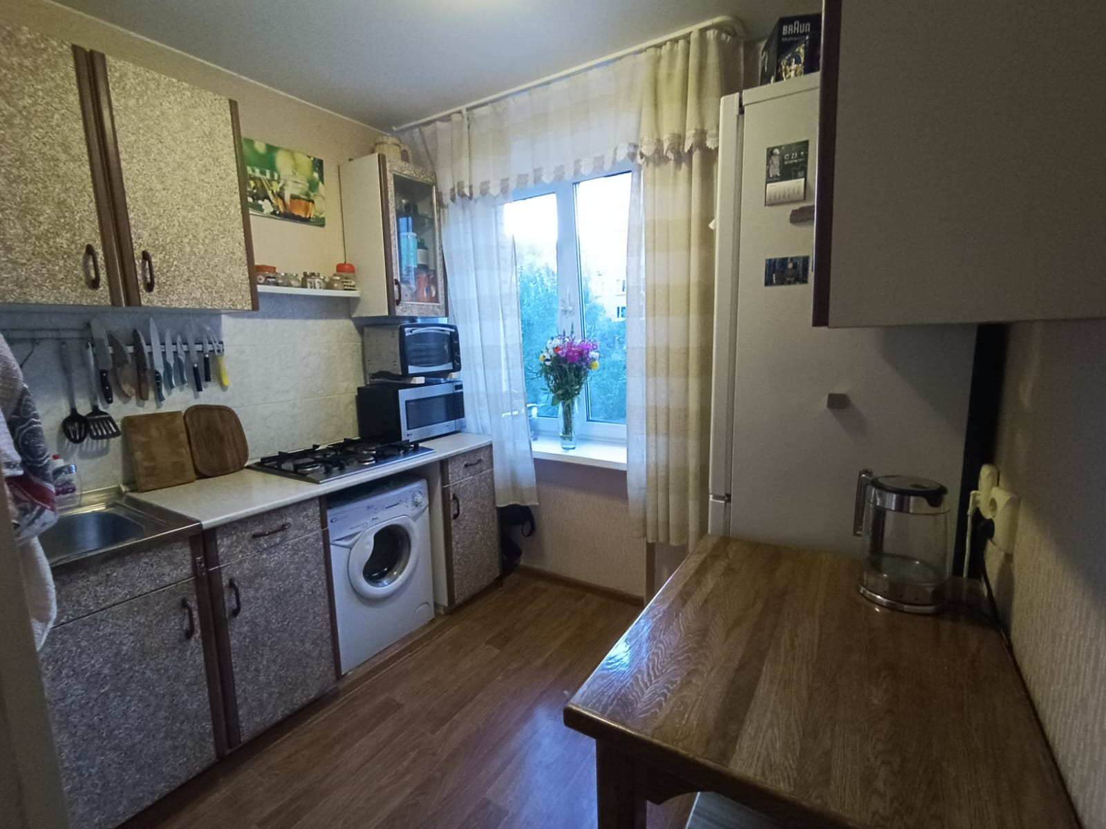 Квартира светлая, чистая. Соседи отличные. В квартире благодаря 51-см кирпичным стенам комфортно летом и тепло зимой. Окна (пластиковые) выходят на две стороны. Шумных дорог рядом нет. Балкон застекленный. Удобное расположение, в шаговой доступности школа, детская и взрослая поликлиника, спорткомплекс Кунцево, много детских площадок, магазинов.