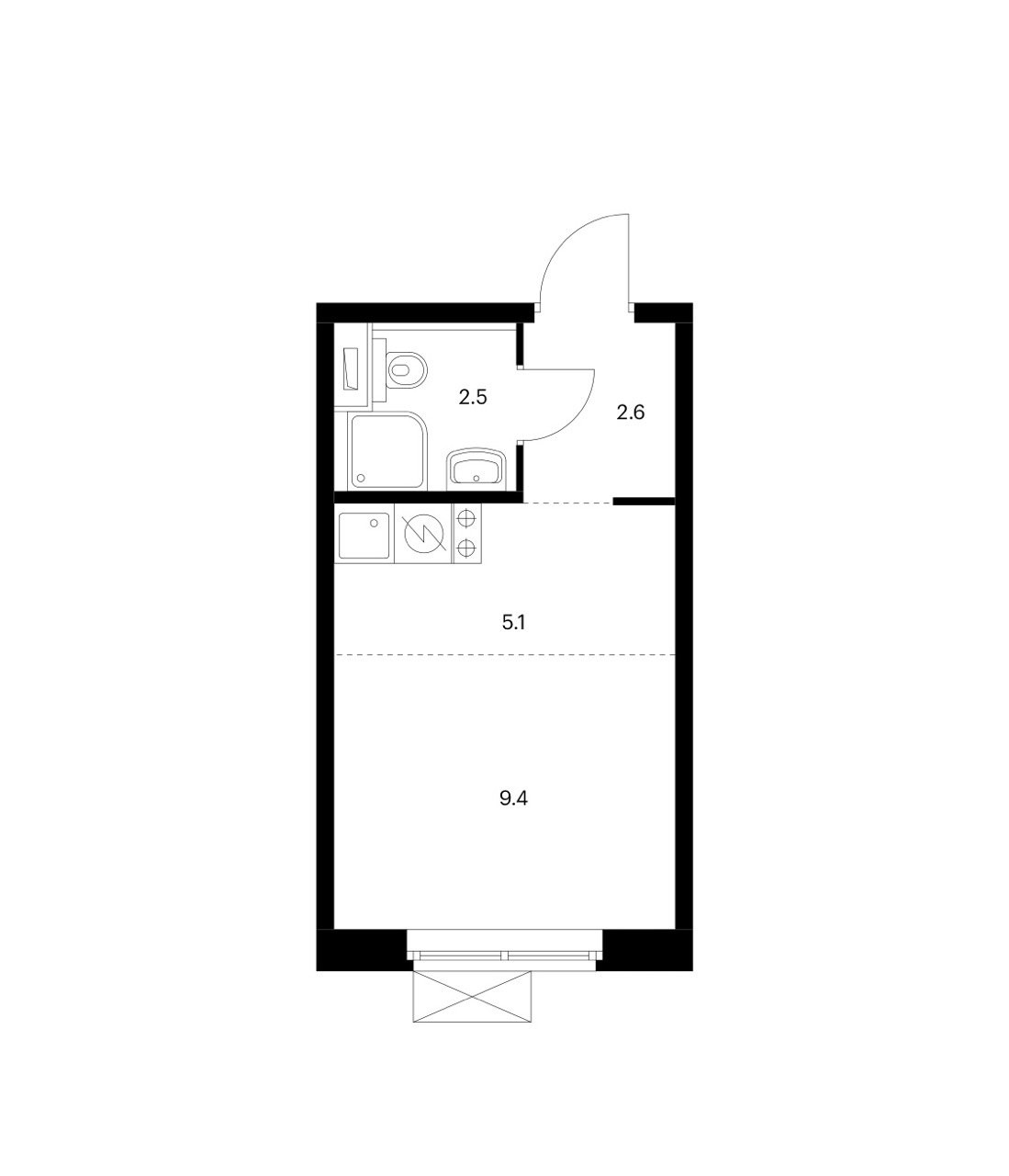 Общая площадь 19.7 м2