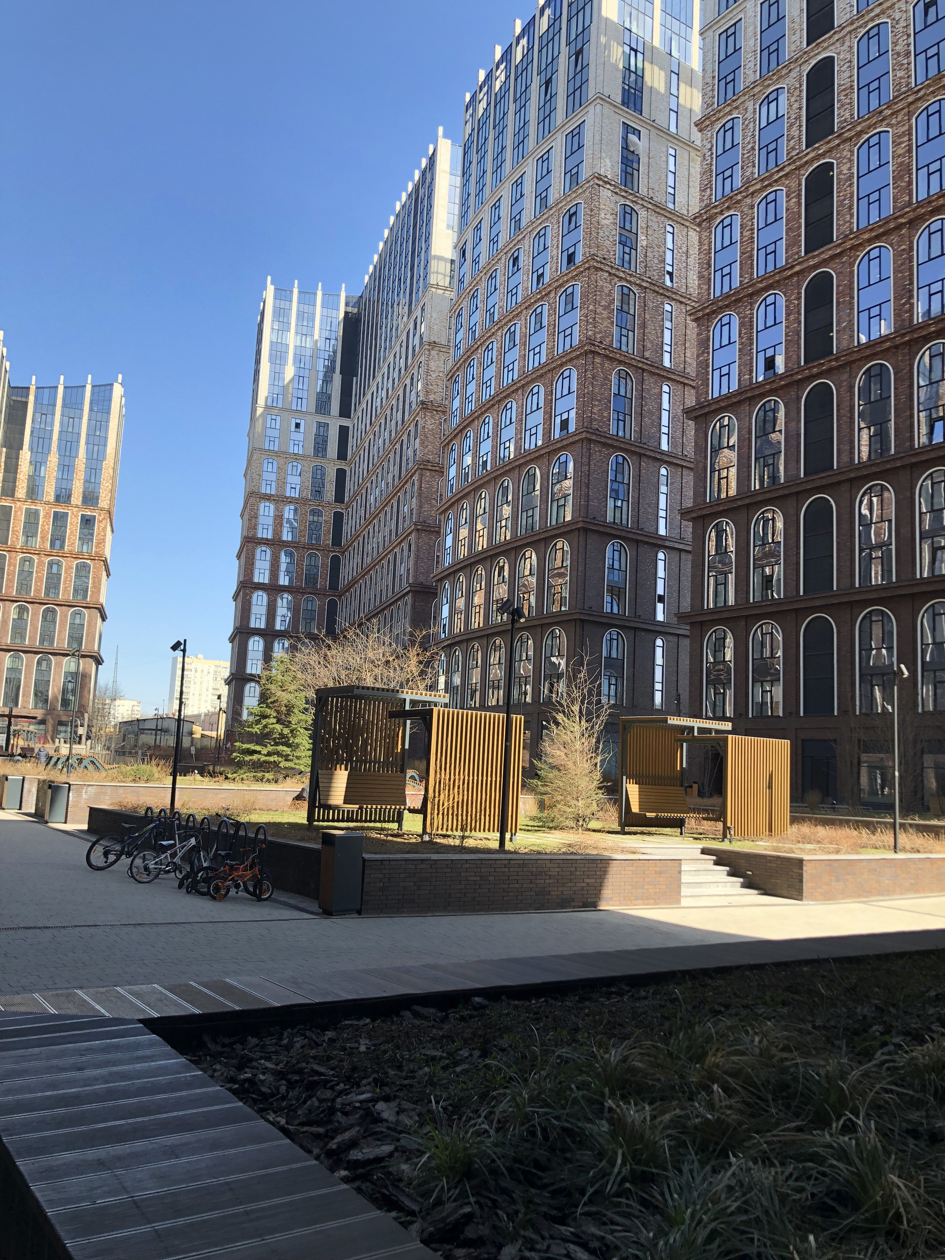 Инфраструктура комплекса: Рекреационные зоны, спортивный клуб, теннисный корт, кафе и магазины, частный детский сад. Оригинальный ландшафтный дизайн и проект освещения дворов от оформителей парка Зарядье и бюро Wowhaus.
