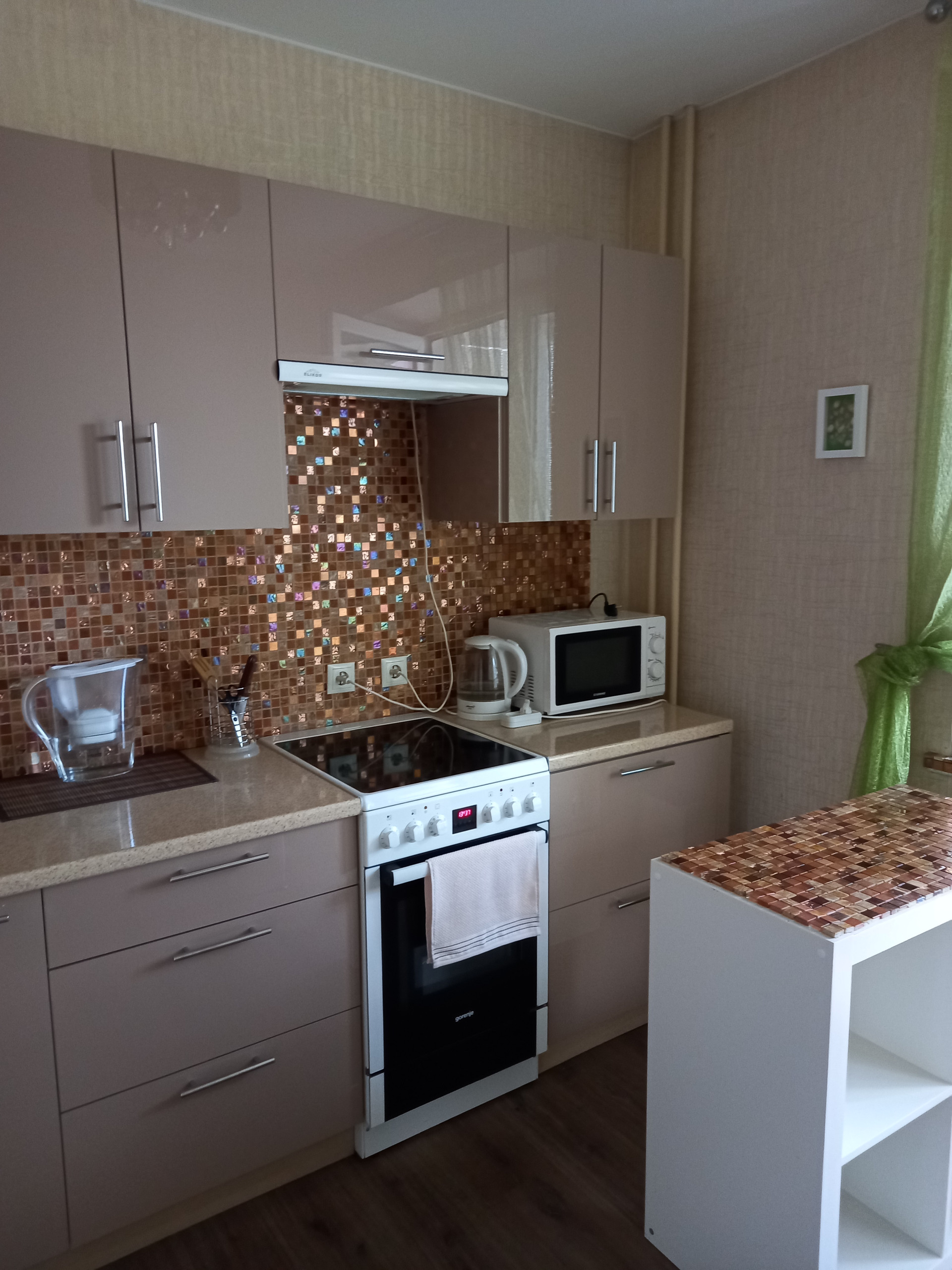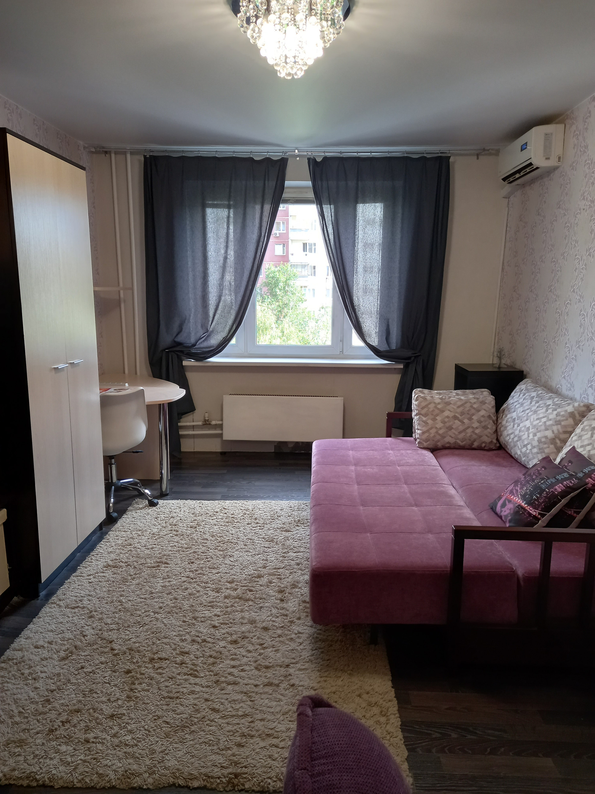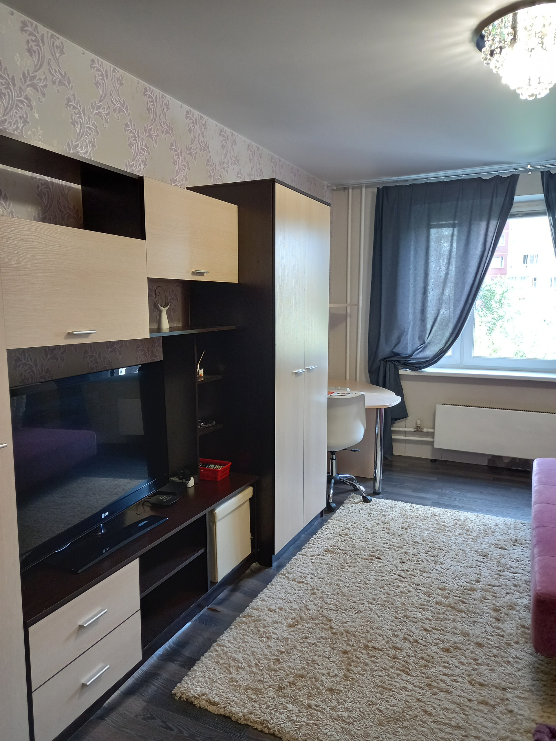 В квартире произведен качественный ремонт. Просторная кухня с выходом на утепленную лоджию, в коридоре гардеробная комната, большая светлая комната, в которой есть система хранения вещей. Полностью оборудована мебелью, бытовой техникой. При желании покупателя можно оставить.