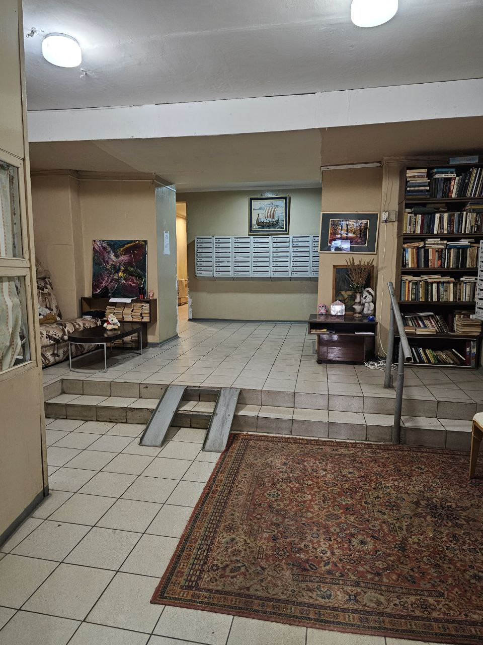 Светлый подъезд, консьерж, грузовой и пассажирский лифт, в общий холл установлена дополнительная дверь.Тихий зеленый двор, детская площадка во дворе, за домом - площадка для выгула собак. У дома есть своя парковка со шлагбаумом.