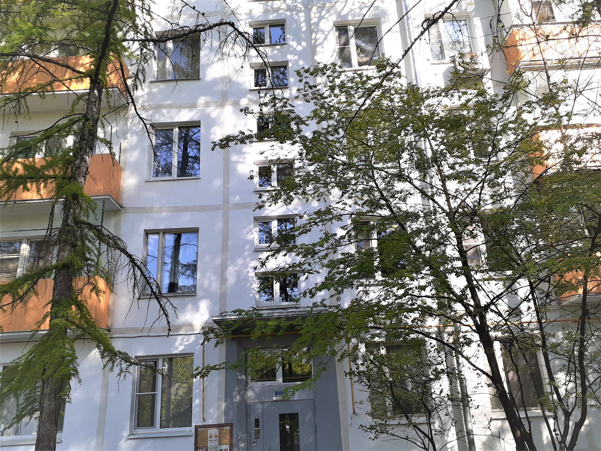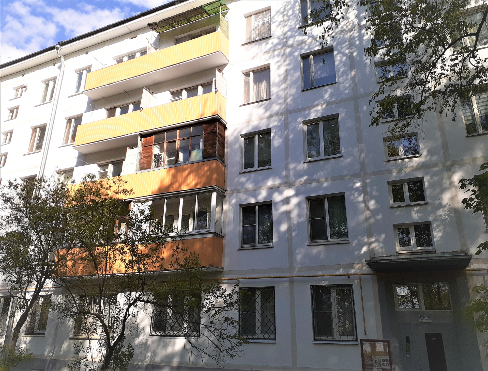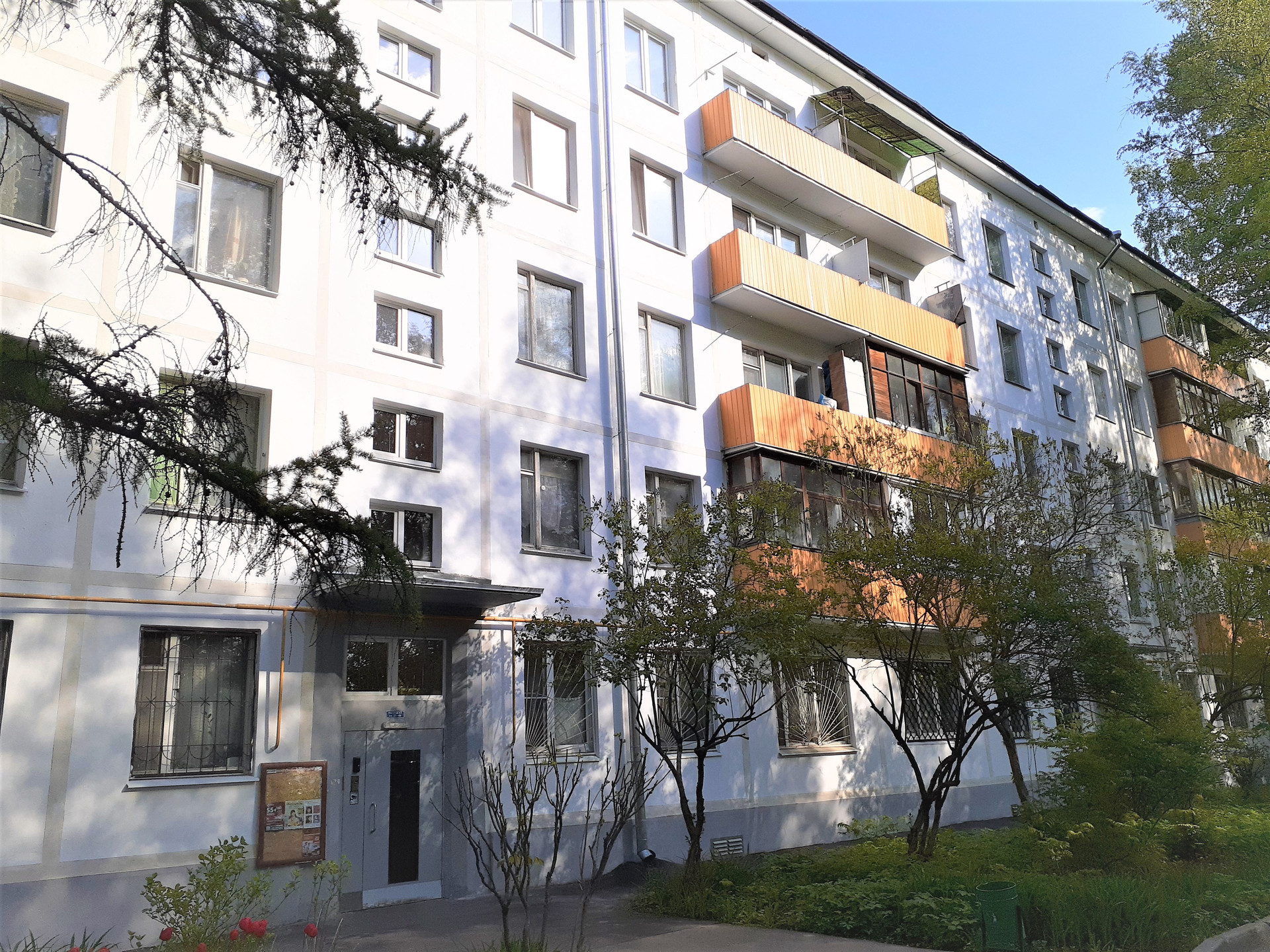 Дом 1968 г. в хорошем состоянии, чистый подъезд, расположен в уютном, тихом дворе, в жилом квартале много зелени, благоустроены площадки и скверы.