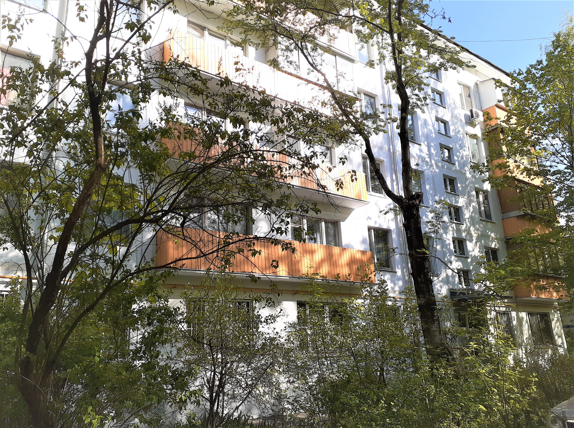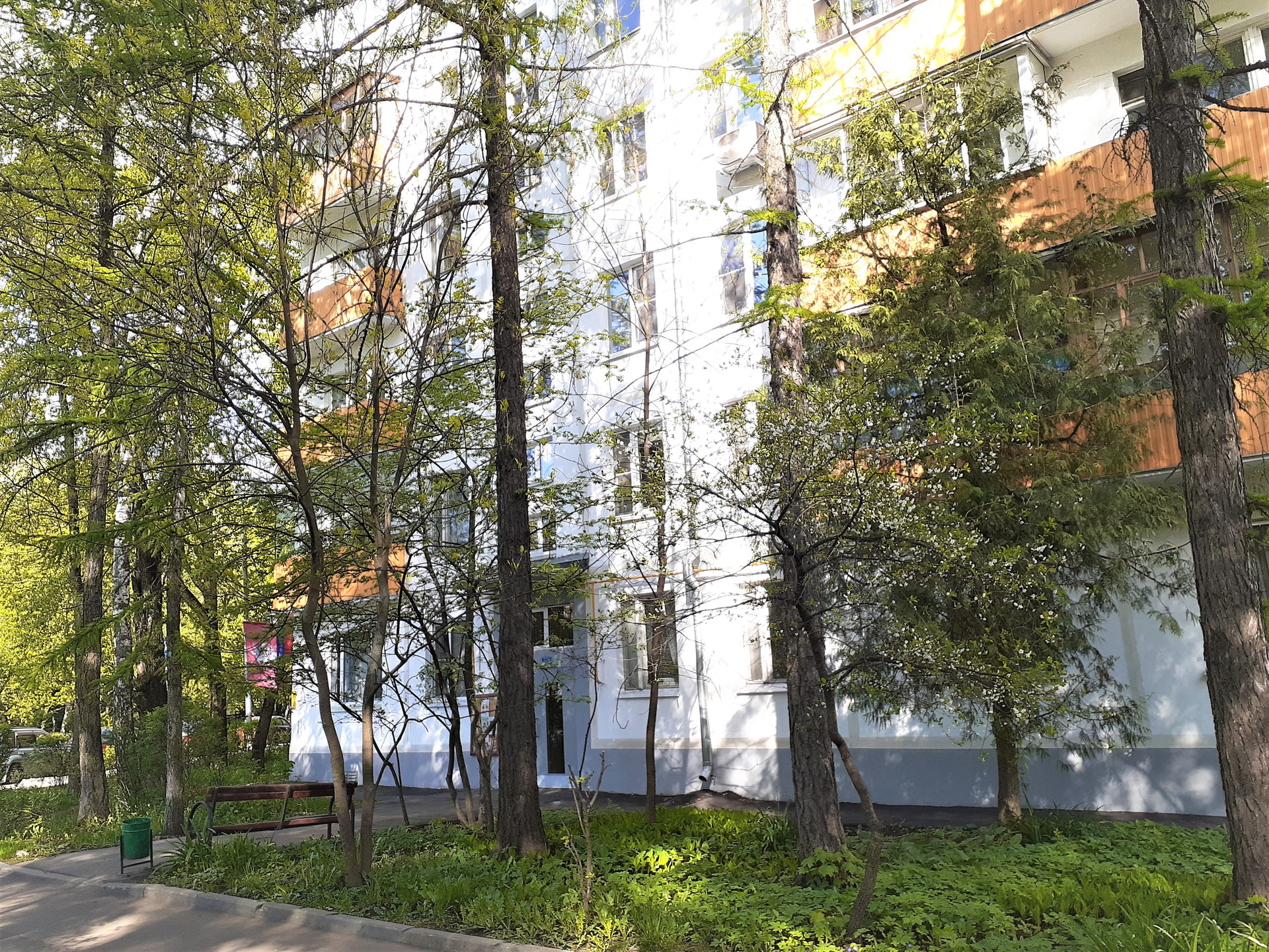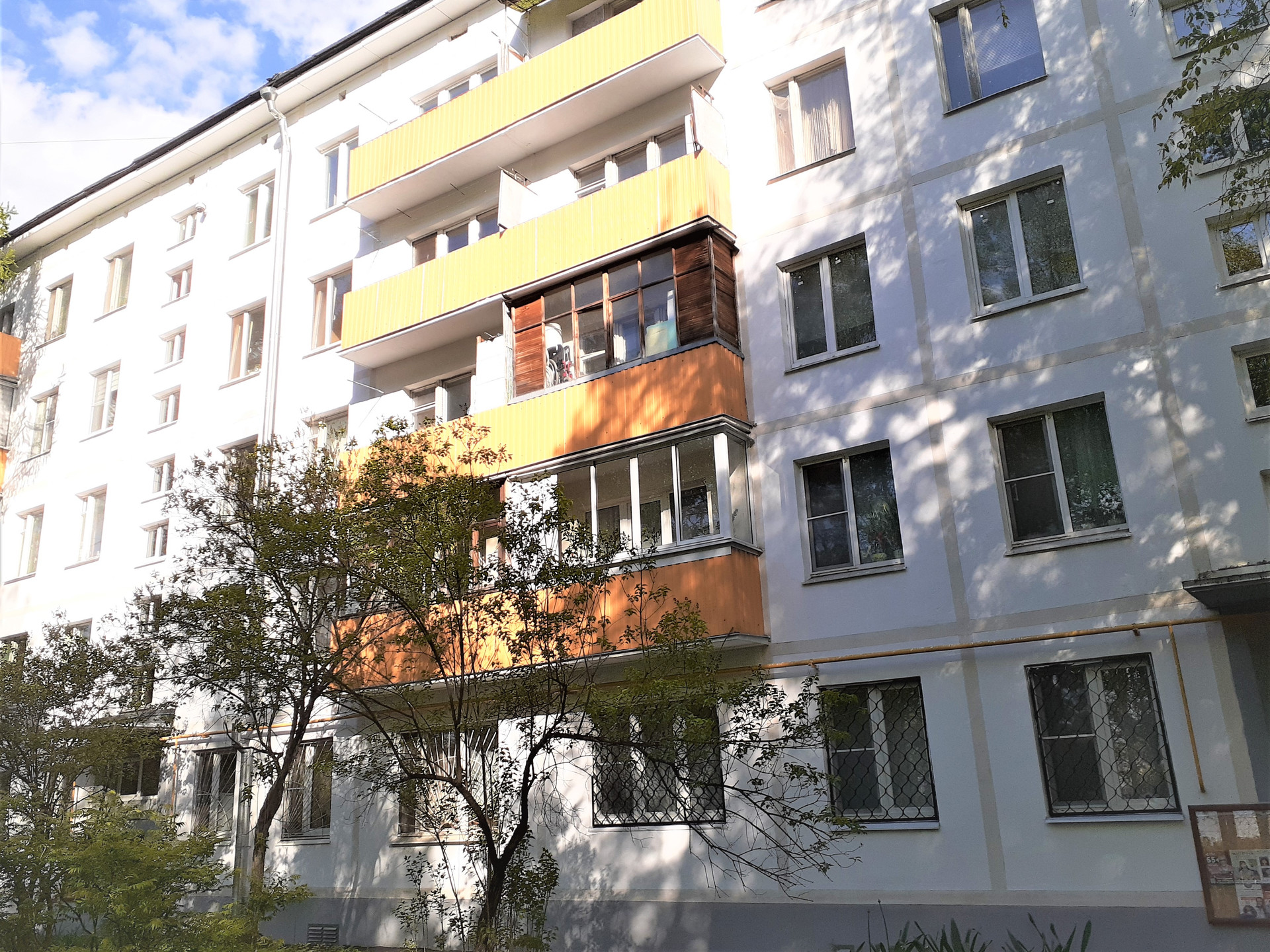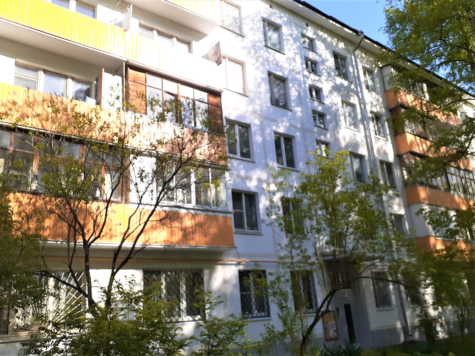 Дом 1968 г. в хорошем состоянии, чистый подъезд, расположен в уютном, тихом дворе, в жилом квартале много зелени, благоустроены площадки и скверы.