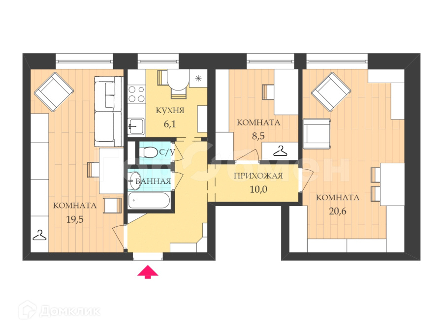 Общая площадь 67.7 м2